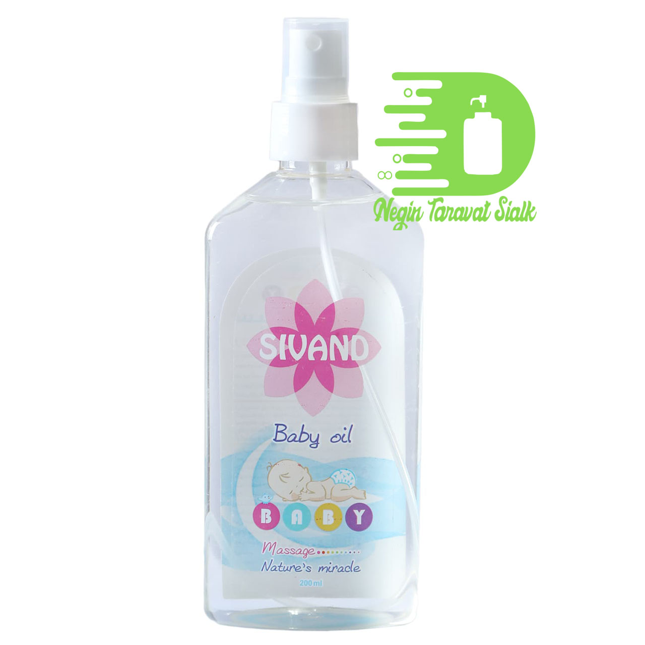 - ۱. مقداری از روغن بدن کودک سیوند را روی پوست تمیز کودک اسپری کنید.